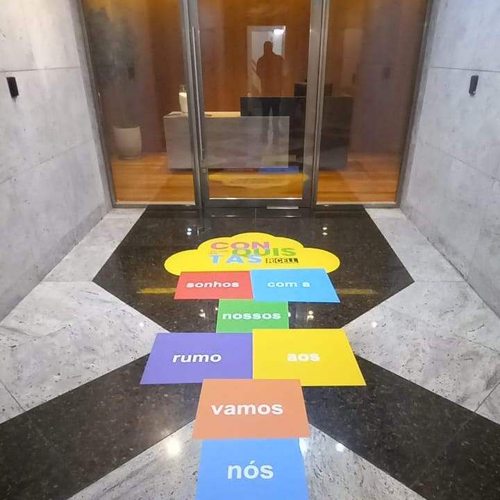 A adesivação de chão é uma técnica de comunicação visual e design que utiliza adesivos aplicados em superfícies de pisos para diversos propósitos.Orientação e Sinalização de Segurança; Ambientes Temáticos; Experiência Interativa; Acabamento Antiderrapante